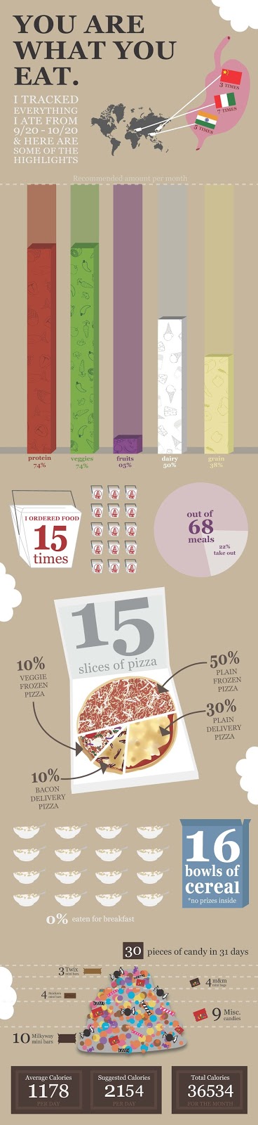 Here is a food-based infographic I made while I was in college. I gotta say, my eating habits really haven't changed....
